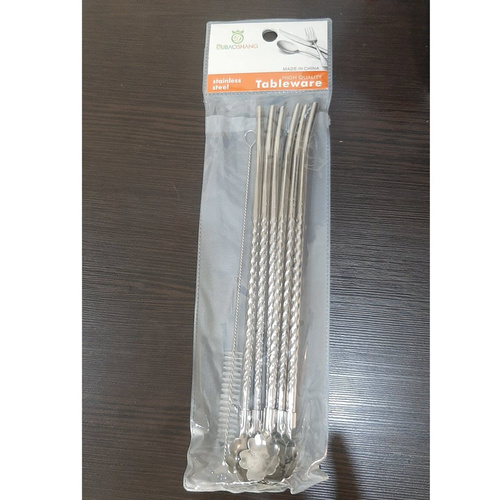 قاشق شربت خوری مدل پیچ نی دار طرح گل بسته 6 عددی به همراه برس شستشو
